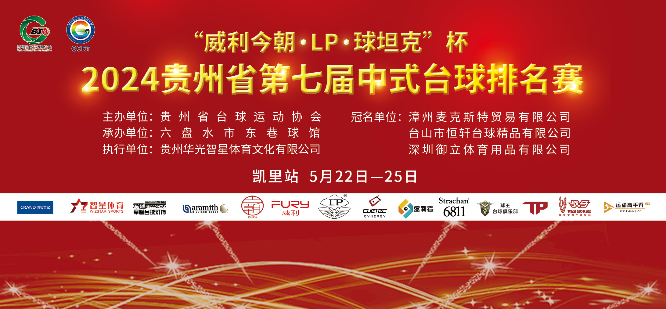 “威利今朝·LP·球坦克”杯2024贵州省第七届中式台球排名赛(凯里站) 时间:5月22-25日 地点:凯里市球王台球俱乐部 ...