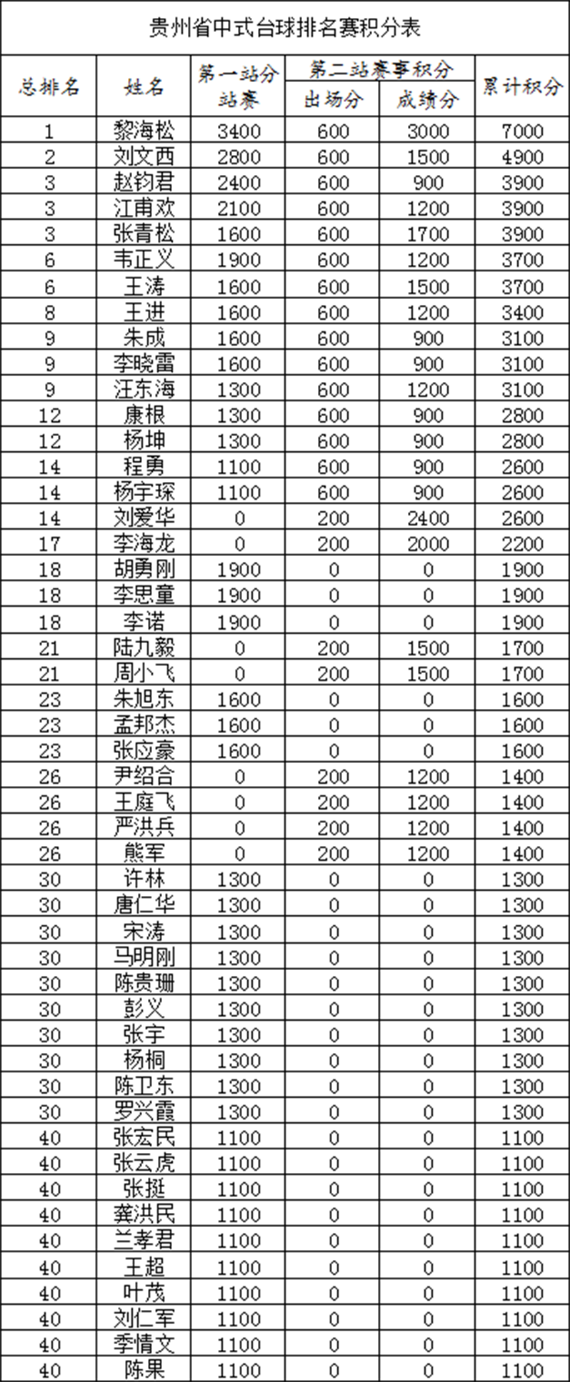 贵州省中式台球排名赛由贵州省社会体育管理中心作为指导单位,贵州省青年体育协会、江西星牌体育发展有限公司联合主办,贵州省青年体育协会台球联盟承办,贵州华光智星体育文化有限公司推广运营,中国体育官方APP全程直播,北京星牌伟业体育用品有限公司、高发漳州运动器材有限公司联合冠名,卡拉宝维生素果味饮料赞助支持。
