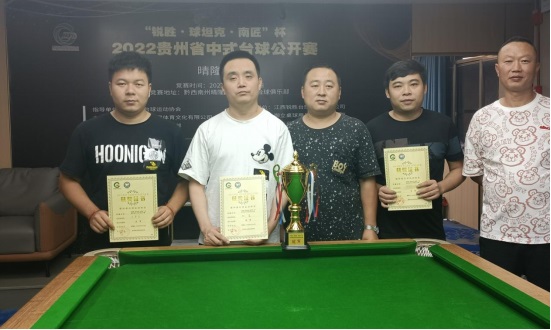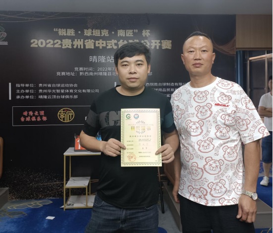 2022年7月19日“锐胜·球坦克·南匠”杯2022贵州省中式台球公开赛在黔西南州晴隆县云项台球俱乐部圆满落下帷幕,本次比赛由贵州省台球运动协会指导,贵州华光智星体育文化有限公司主办;晴隆县云顶台球俱乐部承办;江西锐胜台球制造有限公司、御立桌球用品贸易有限公司、广东省佛山市鲨鱼球杆厂荣誉冠名。特别鸣谢:锐胜台球桌、球坦克球杆、南匠球杆、Wizstar(极速)台尼、LP梦皮头、HR巧粉;抖音直播平台对本次比赛全程直播。
