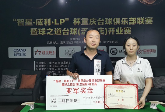 颁奖嘉宾:球之道台球俱乐部(涪陵店)主管 向双丽
