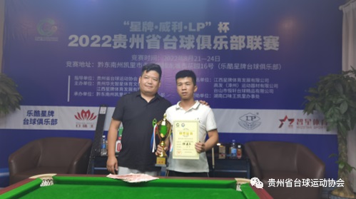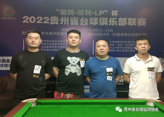 2022年8月24日,“星牌·威利·LP”杯贵州省中式台球俱乐部联赛(凯里星牌乐酷站)在凯里市星牌乐酷台球俱乐部圆满结束。本次比赛由贵州省台球运动协会指导,贵州华光智星体育文化有限公司主办,湖南口味王凯里办事处倾情赞助;凯里市星牌乐酷台球俱乐部承办,江西星牌体育发展有限公司、高发(漳州)运动器材有限公司(威利台球杆)、台山市恒轩台球精品有限公司(LP台球杆)荣誉冠名。