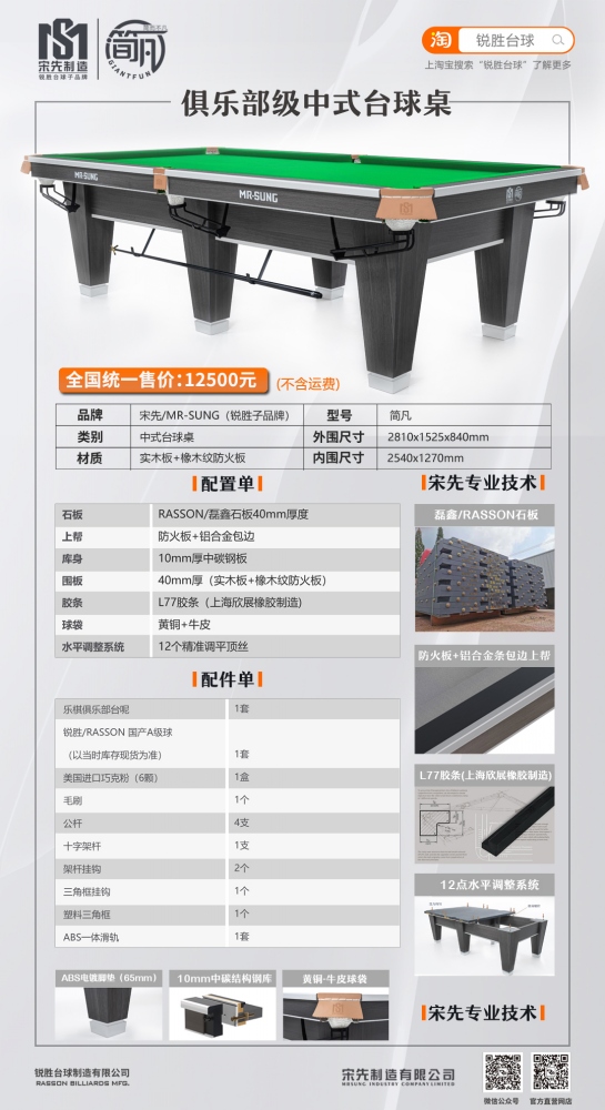 锐胜/RASSON 简凡 中式台球桌