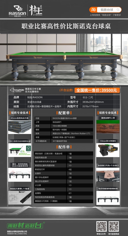 锐胜/RASSON 壮士二代 斯诺克台球桌