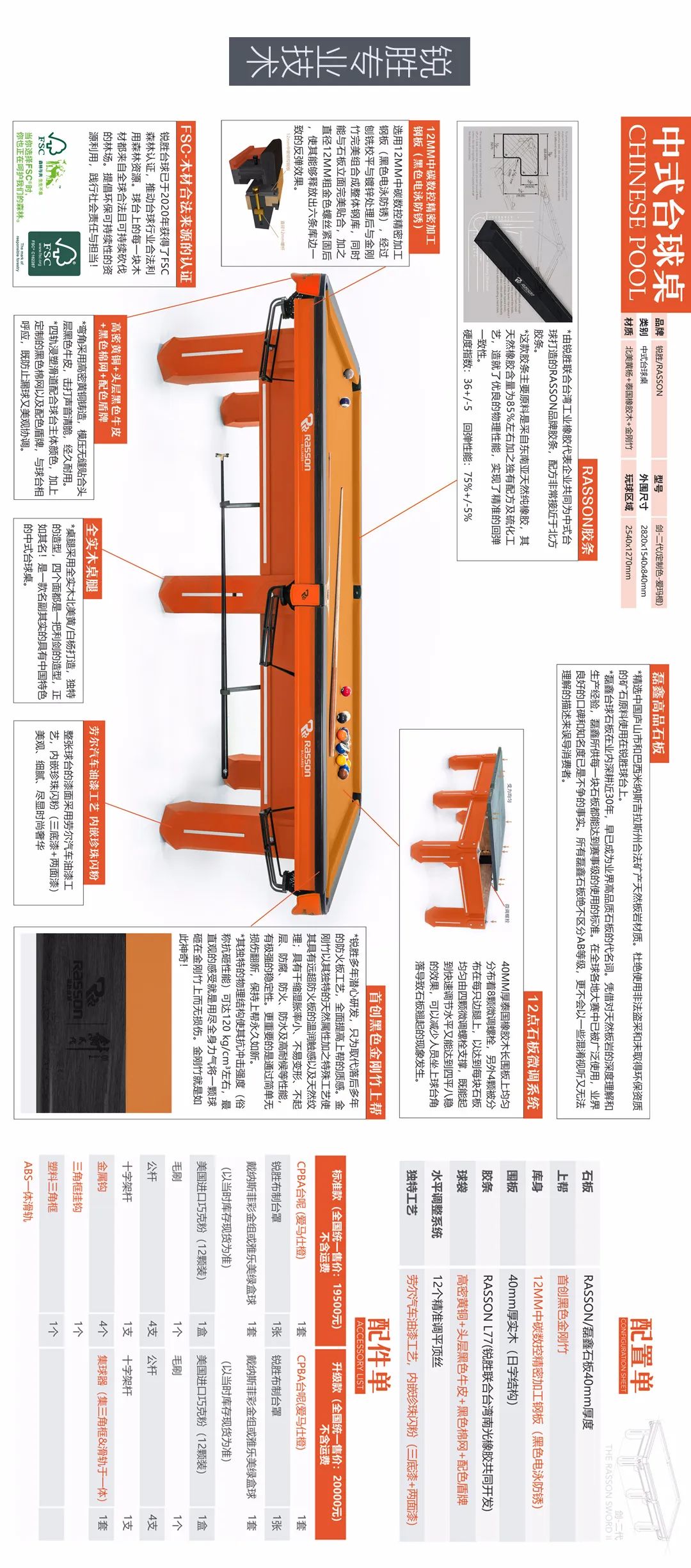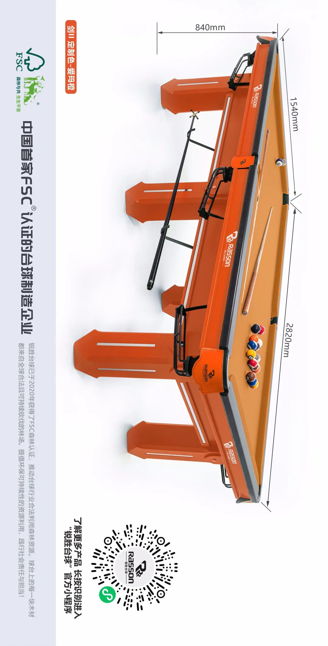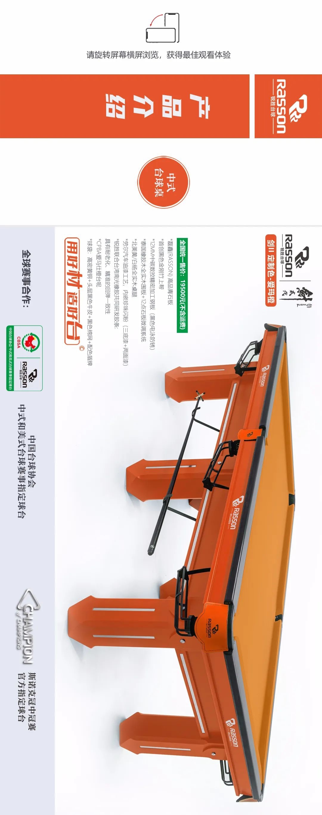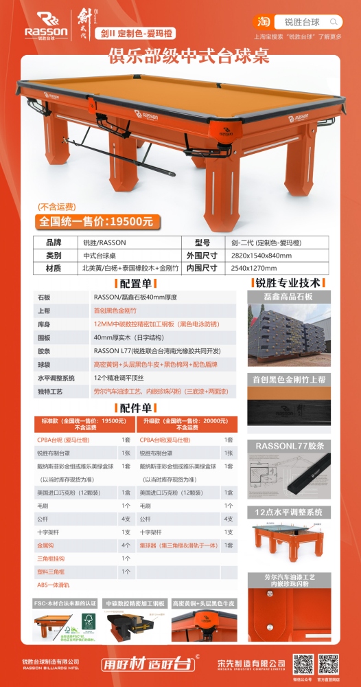 锐胜/RASSON 剑二代 中式台球桌(定制色:爱玛橙)