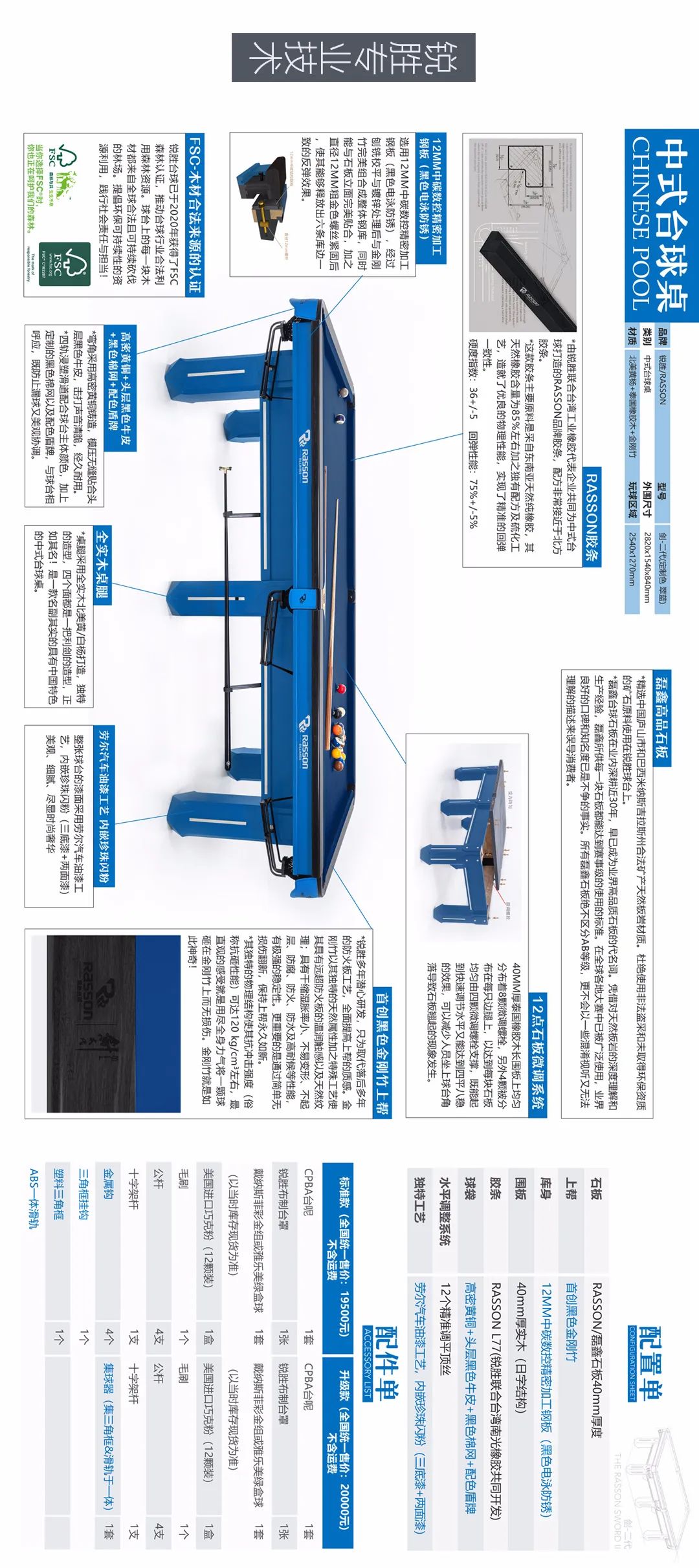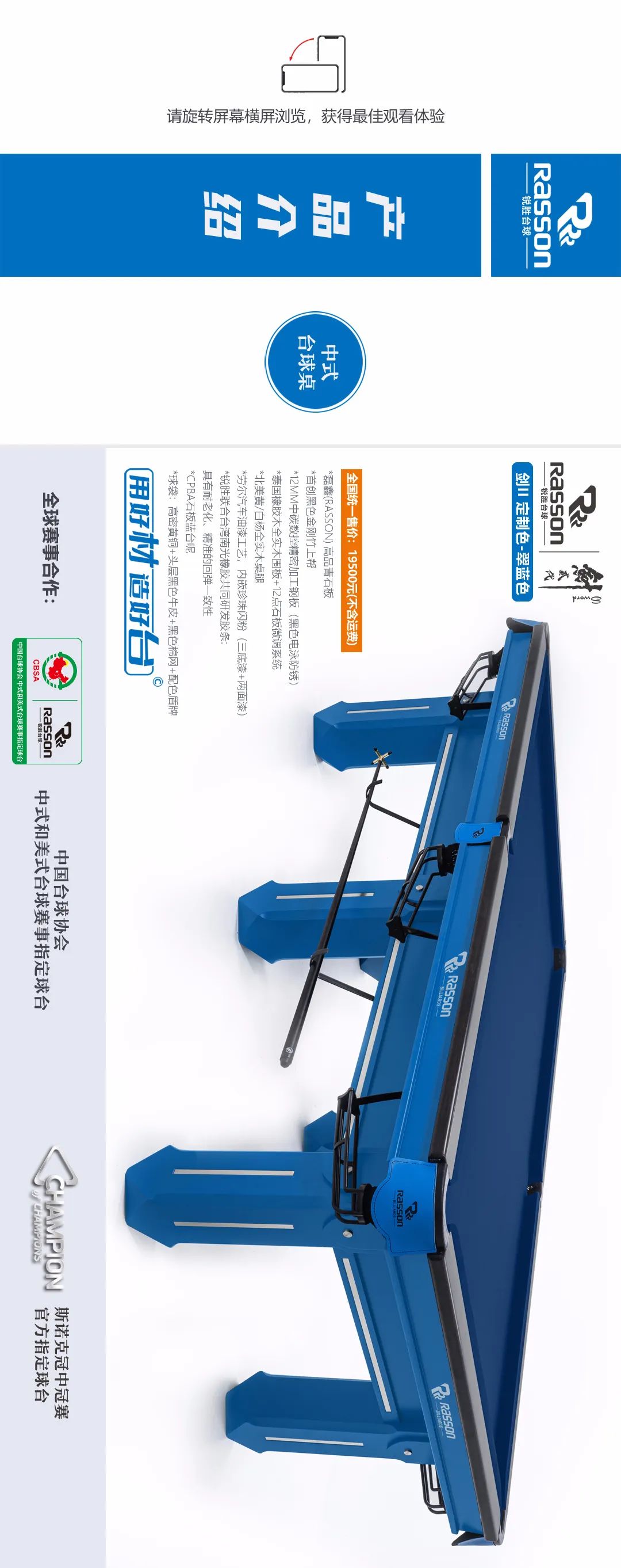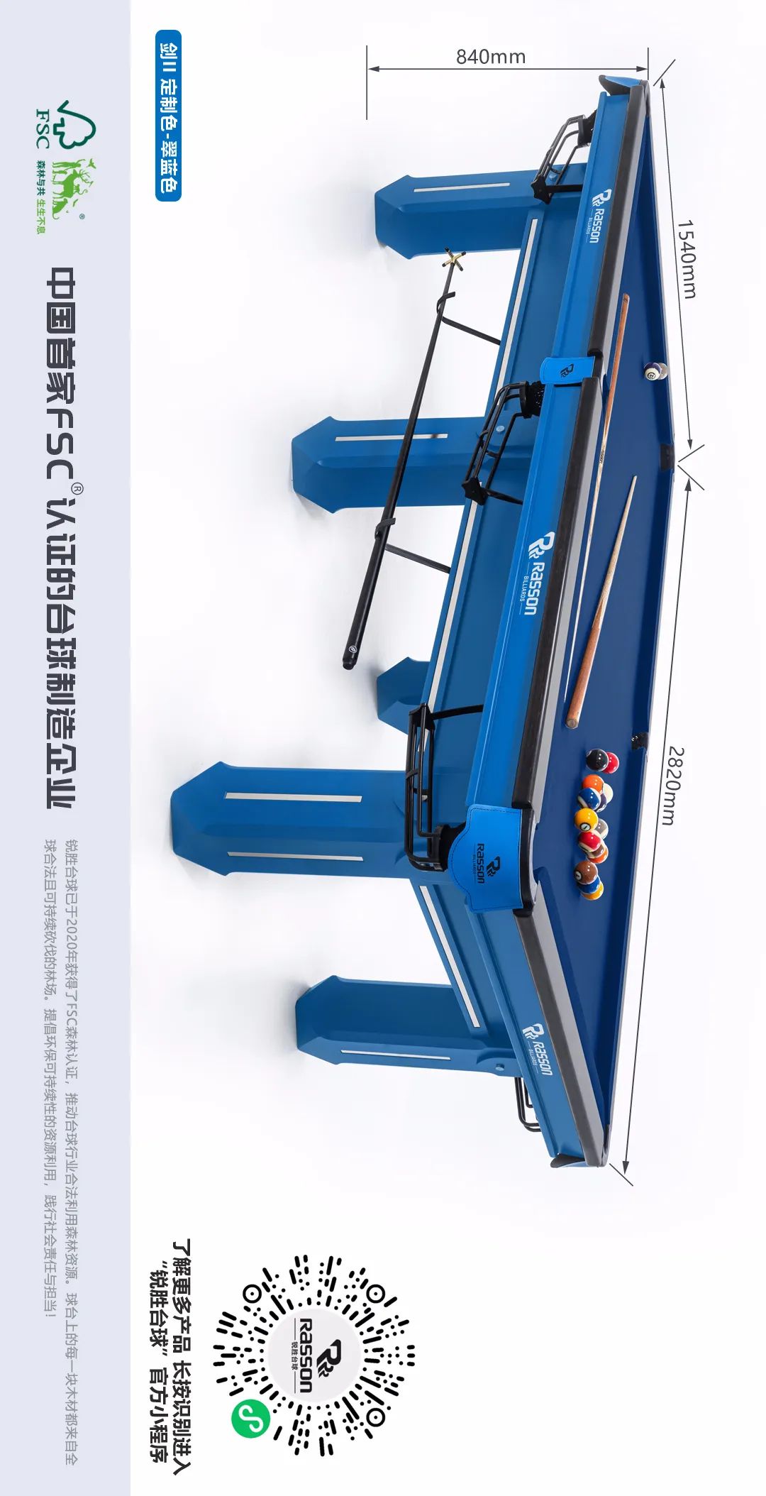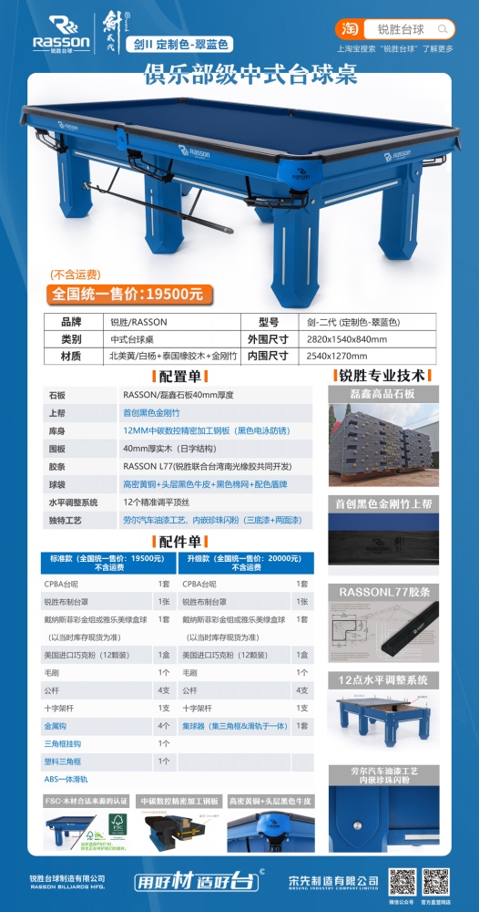锐胜/RASSON 剑二代 中式台球桌(定制色:翠蓝)