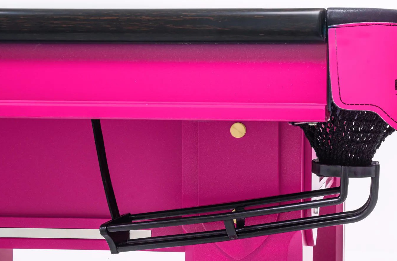品牌:锐胜 型号:剑-二代(定制色-玫瑰紫) 类别:中式台球桌 外围尺寸:2820x1540x840mm 内围尺寸:2540x1270mm 材质:北美黄/泰国橡胶木+金刚竹