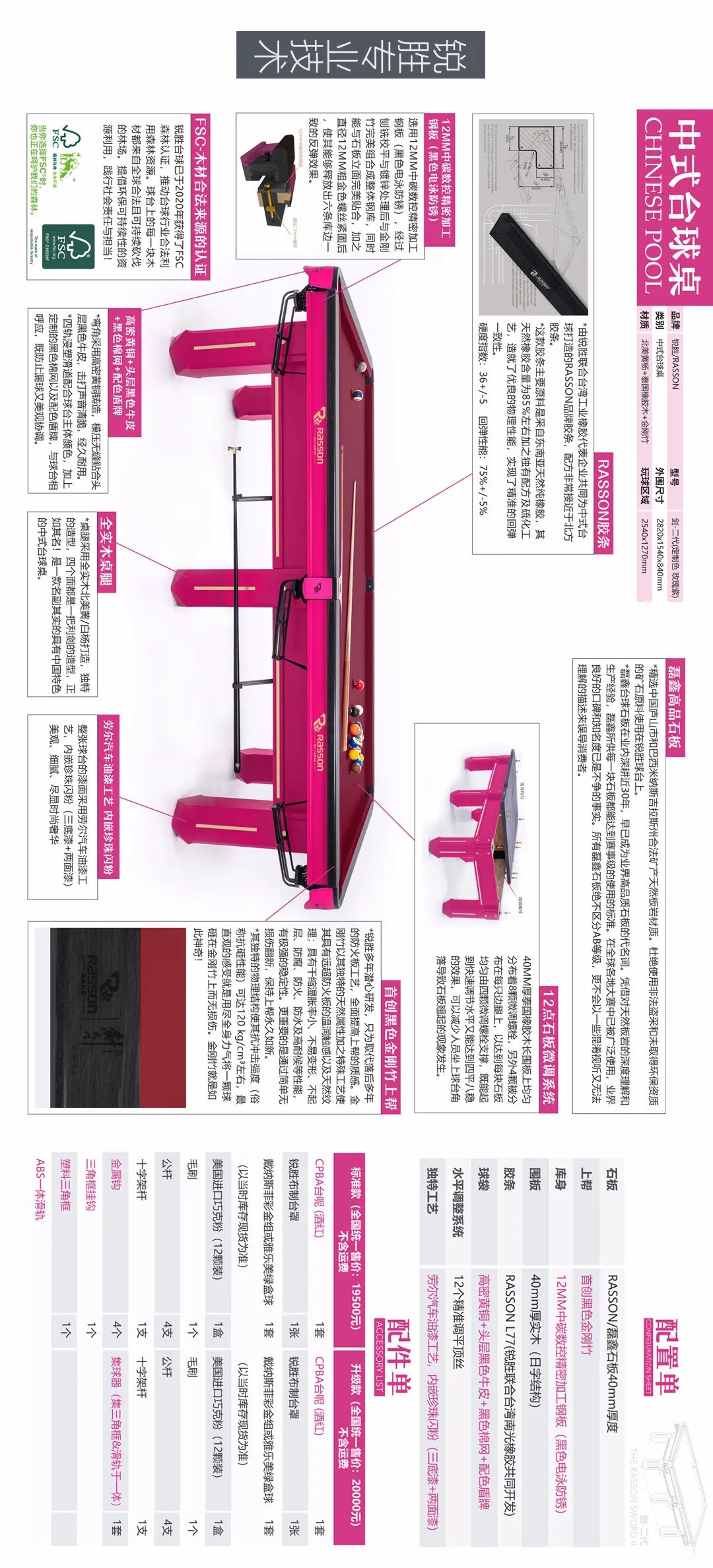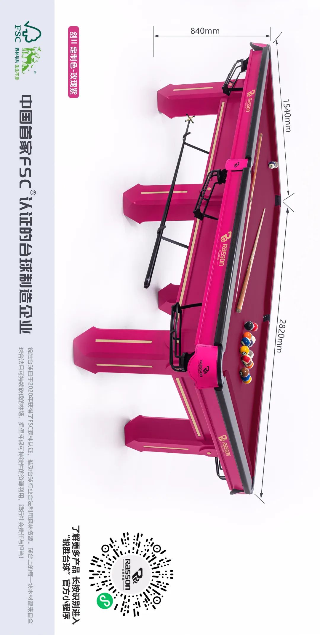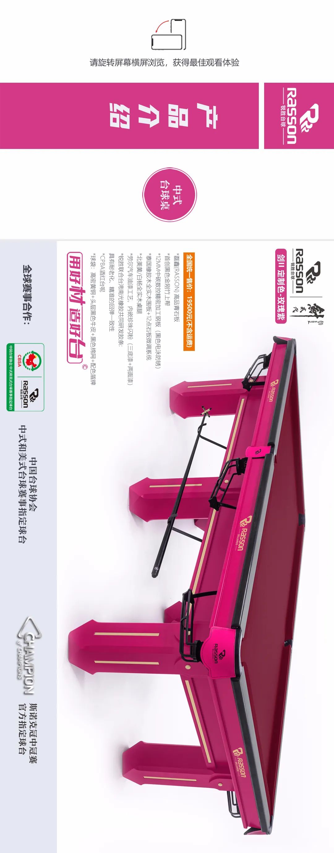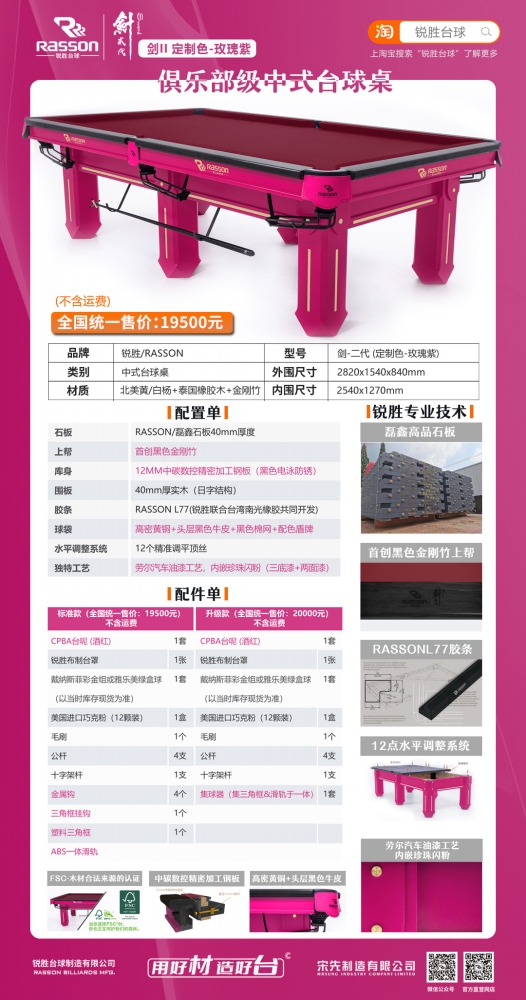 锐胜/RASSON 剑二代 中式台球桌(定制色:玫瑰紫)