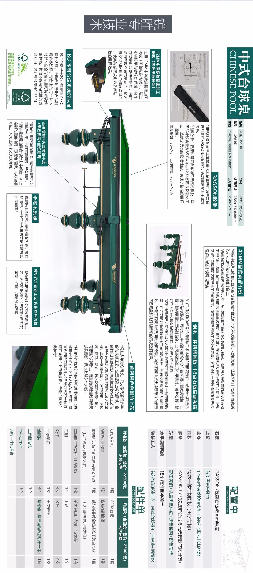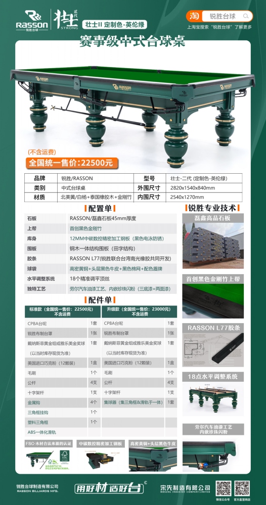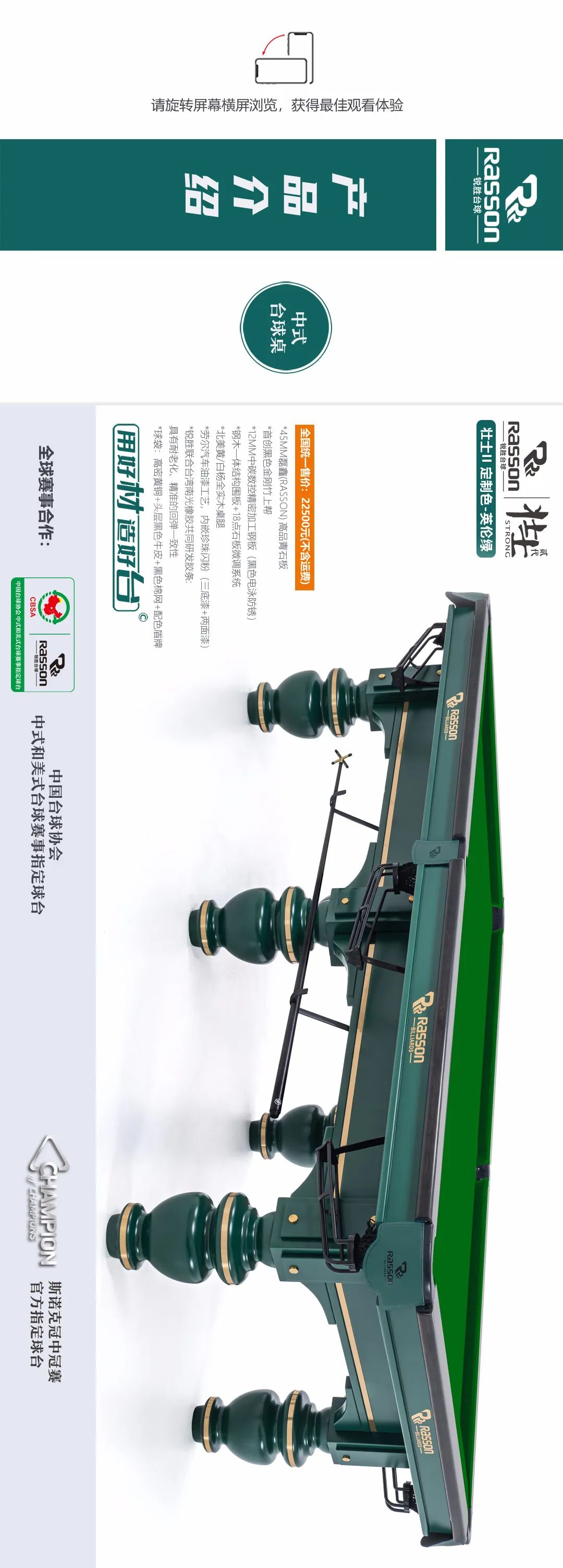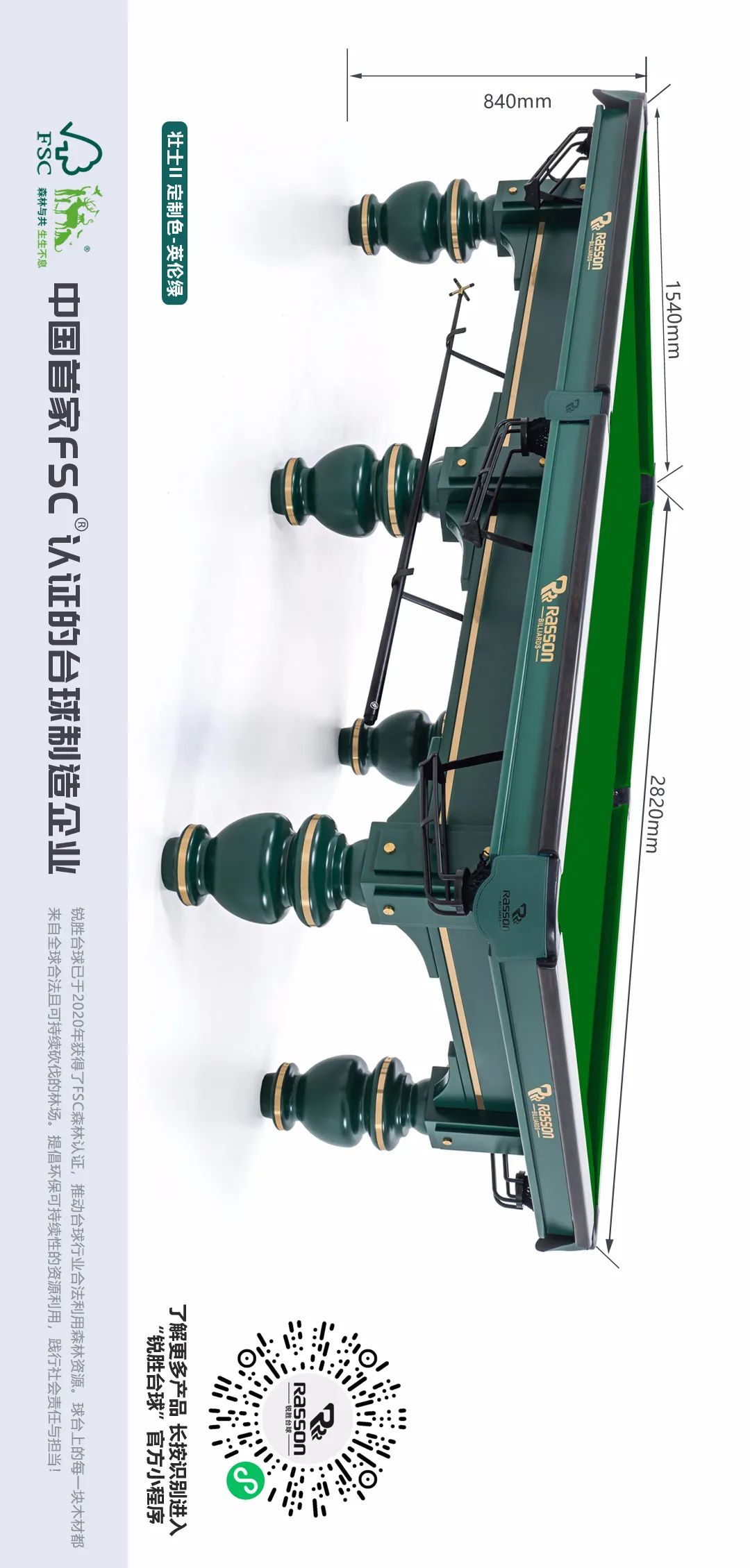 锐胜/RASSON 壮士二代 中式台球桌(定制色:英伦绿)