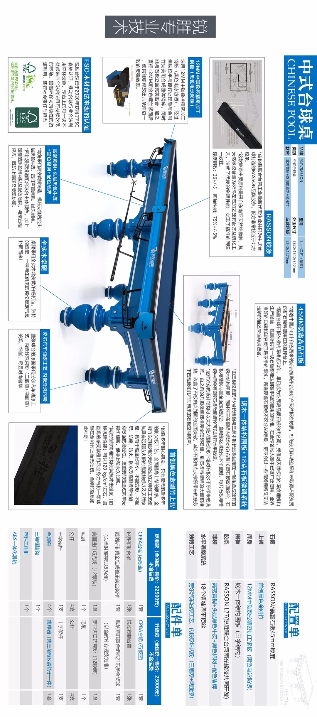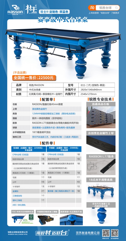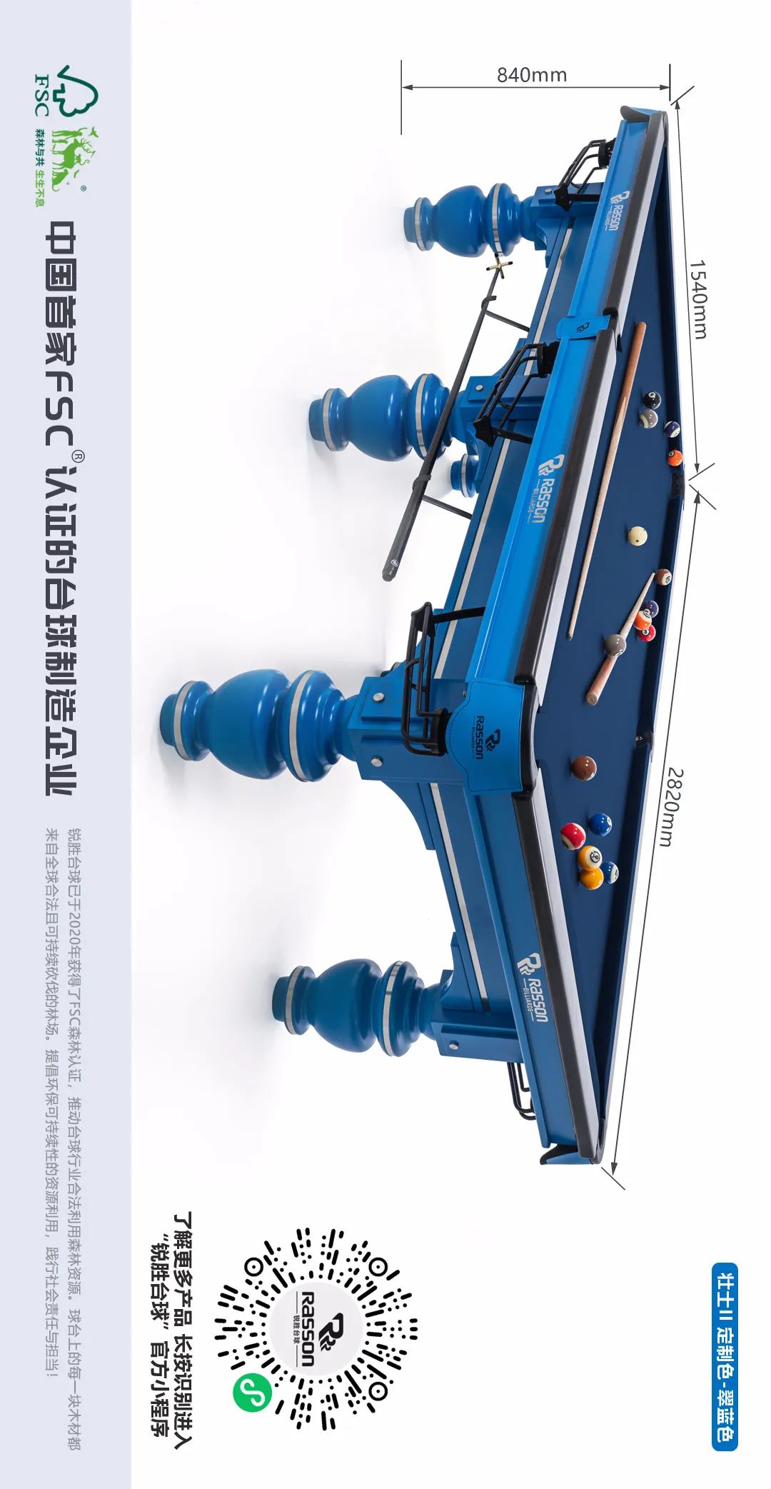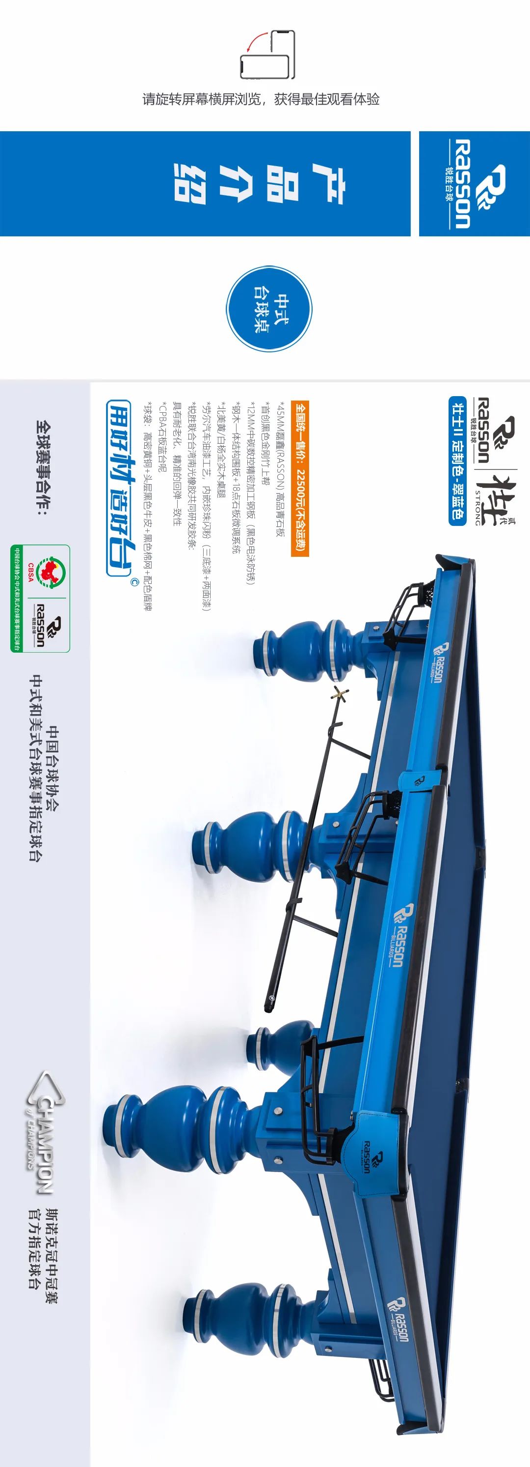 锐胜/RASSON 壮士二代 中式台球桌 (定制色:翠蓝)