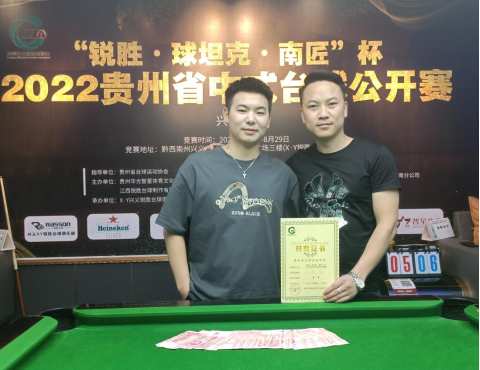 2022年8月30日“锐胜·球坦克·南匠”杯2022贵州省中式台球公开赛在黔西南州兴义市“X·Y锐胜台球俱乐部”圆满落下帷幕,本次比赛由贵州省台球运动协会指导,贵州华光智星体育文化有限公司主办;兴义X·Y锐胜台球俱乐部承办;湖南口味王兴义办事处、喜力啤酒倾情赞助;江西锐胜台球制造有限公司、御立桌球用品贸易有限公司、广东省佛山市鲨鱼球杆厂荣誉冠名。特别鸣谢:锐胜台球桌、球坦克球杆、南匠球杆、Wizstar(极速)台尼、LP梦皮头、HR巧粉;运动高手秀APP和抖音直播平台对本次比赛全程直播。