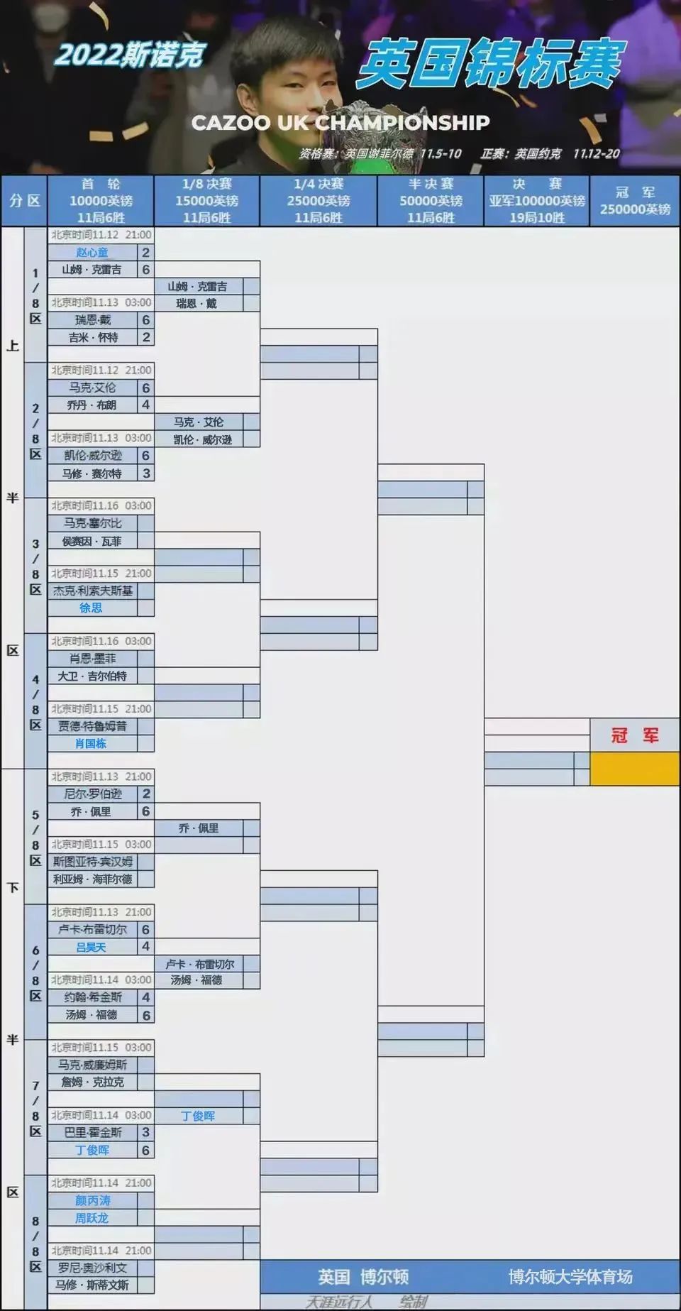 北京时间11月14日晚,2022斯诺克英锦赛正赛第二日比赛宣告结束。中国队丁俊晖晋级正赛16强。