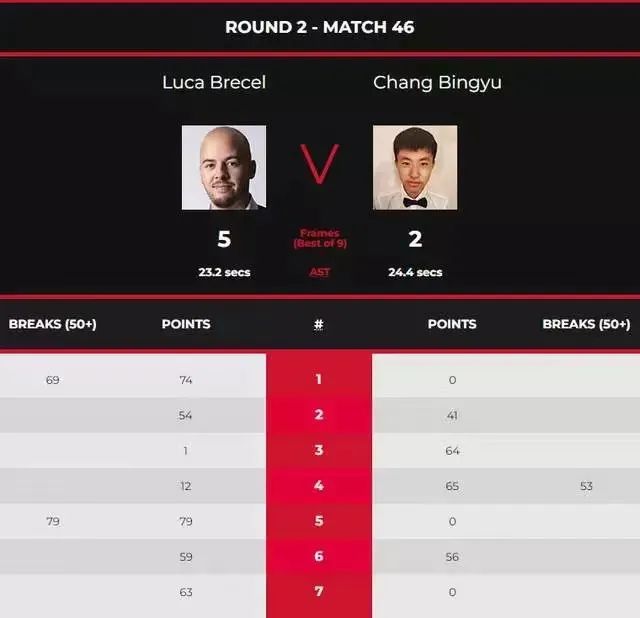 资格赛第四日第三时段,常冰玉对阵卢卡·布雷塞尔 。开局,布雷塞尔以74(69)-0和54-41连胜两局,大比分2-0领先。随后,常冰玉凭借单杆53分,以64-1和65(53)-12连扳两局,大比分2-2扳平。