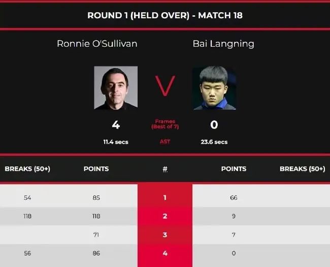 R.奥沙利文 4-0 白朗宁
