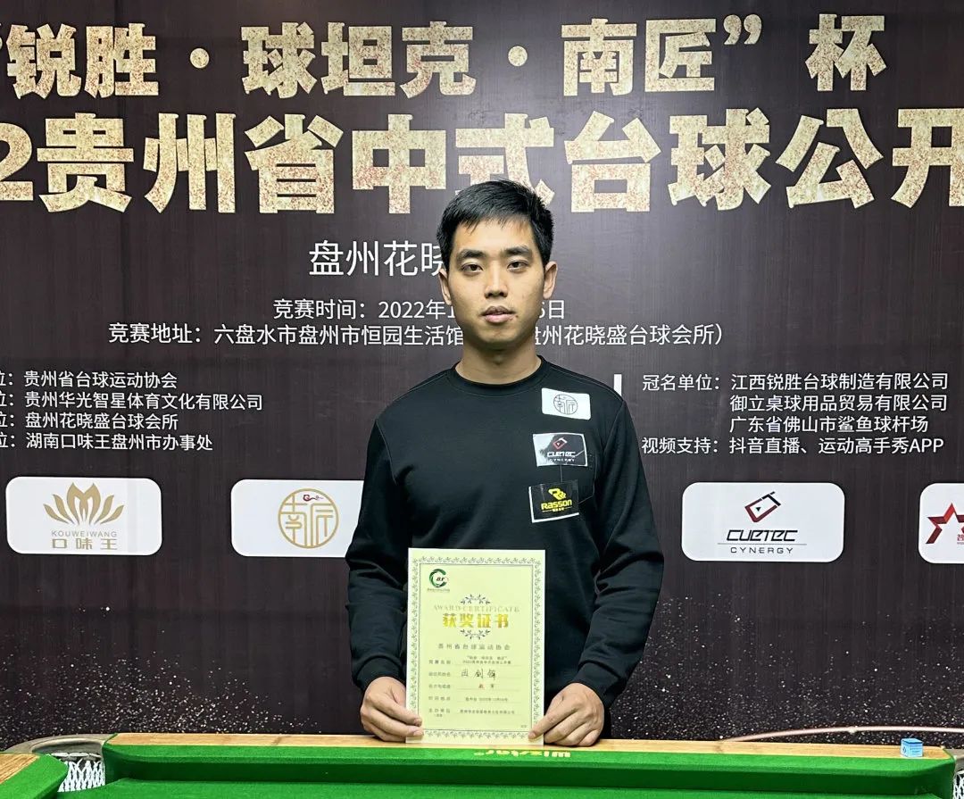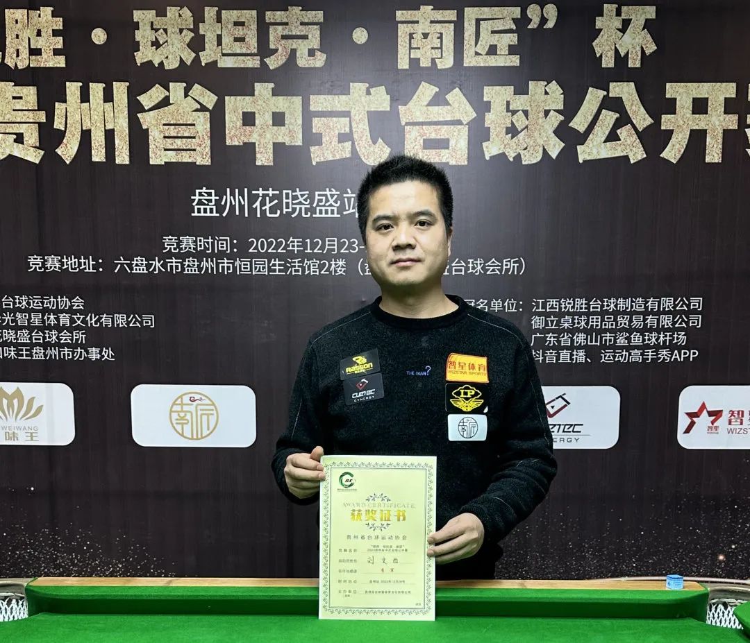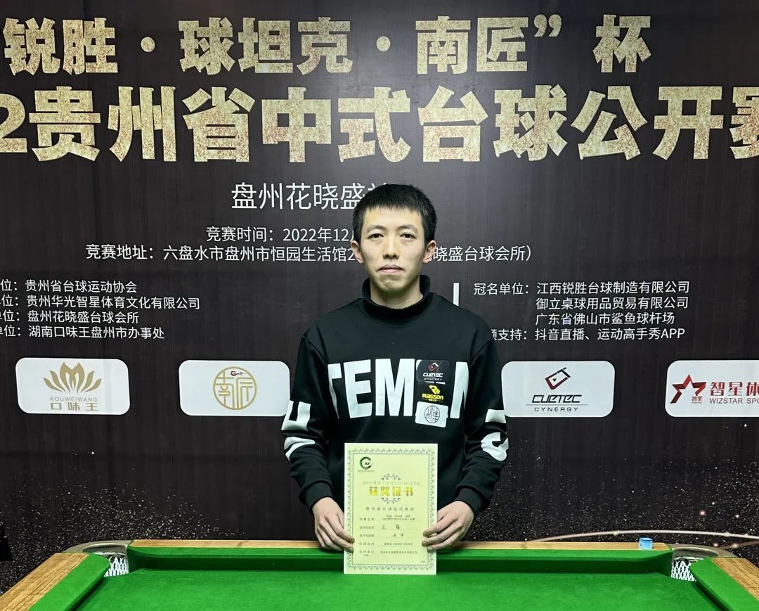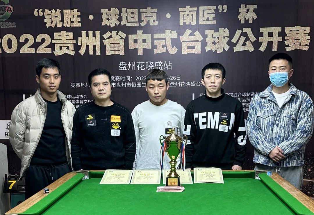 2022年12月26日,为期四天的“锐胜·球坦克·南匠”杯2022贵州省中式台球公开赛(盘州站)在盘州花晓盛台球会所圆满落幕。本次赛事由贵州省台球运动协会指导,贵州华光智星体育文化有限公司主办,江西锐胜台球制造有限公司、御立桌球用品贸易有限公司和广东省佛山市鲨鱼球杆厂冠名,盘州花晓盛台球会所承办,湖南口味王盘州市办事处赞助。