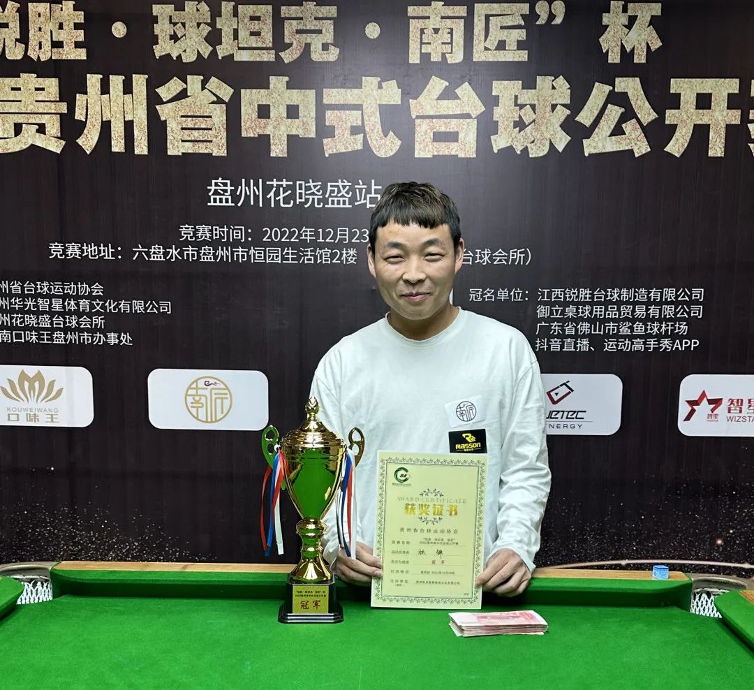 在决赛对战中,林锦和王辰都发挥出了自己最强的实力,经过11局的激励对战,最后林锦以8-3的比分赢下本场比赛,夺得本次“锐胜·球坦克·南匠”杯2022贵州省中式台球公开赛(盘州站)的冠军。