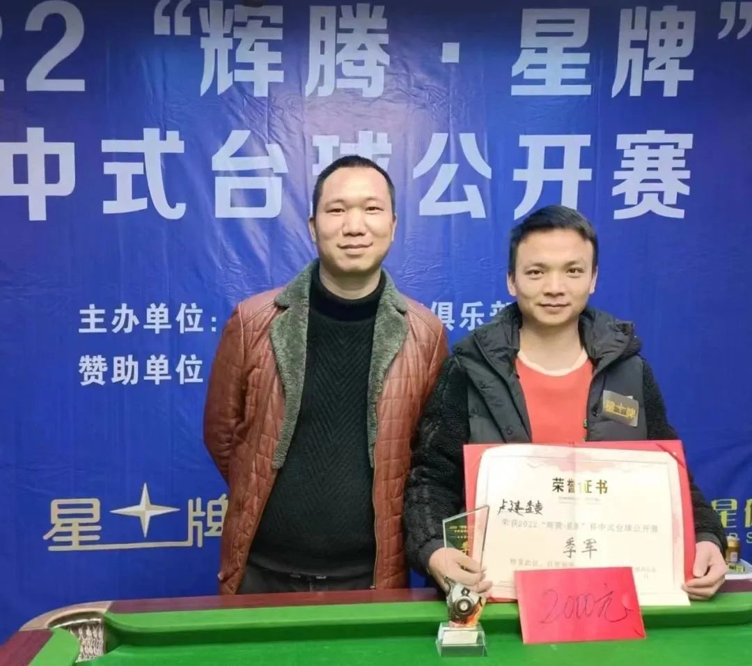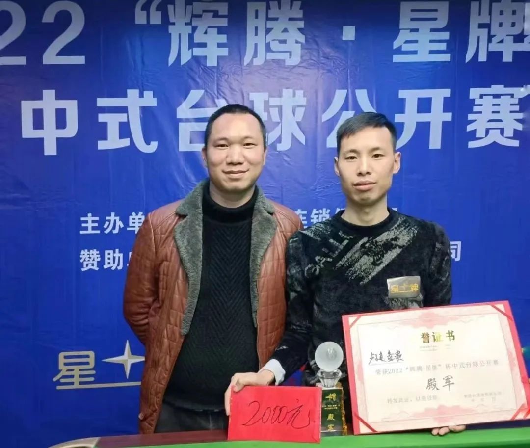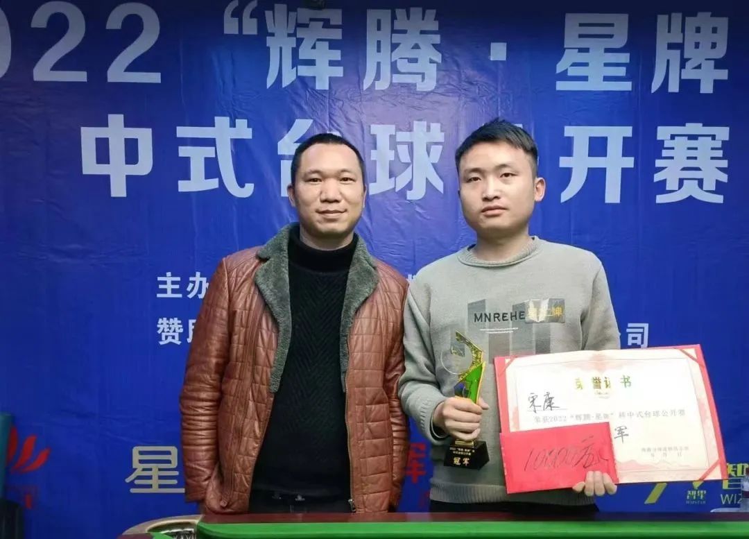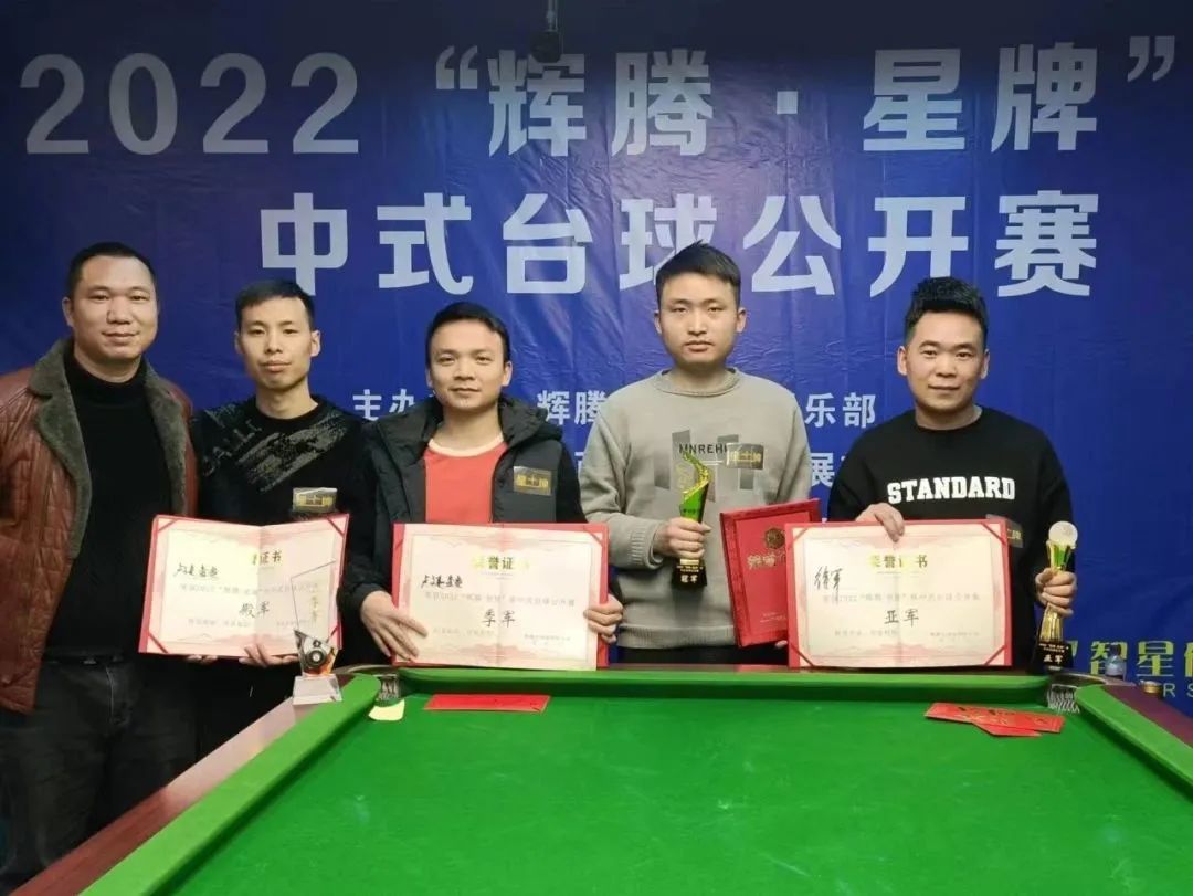 2022年12月28日,为期三天的2022“辉腾·星牌”杯中式台球公开赛在辉腾台球连锁俱乐部落下帷幕。本次赛事由辉腾台球连锁俱乐部主办,江西星牌体育发展有限公司和贵州口味王织金办事处倾情赞助,星牌球桌为指定球桌。