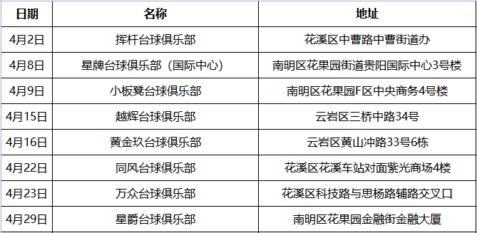 比赛地点:花溪区中曹路(挥杆台球俱乐部)