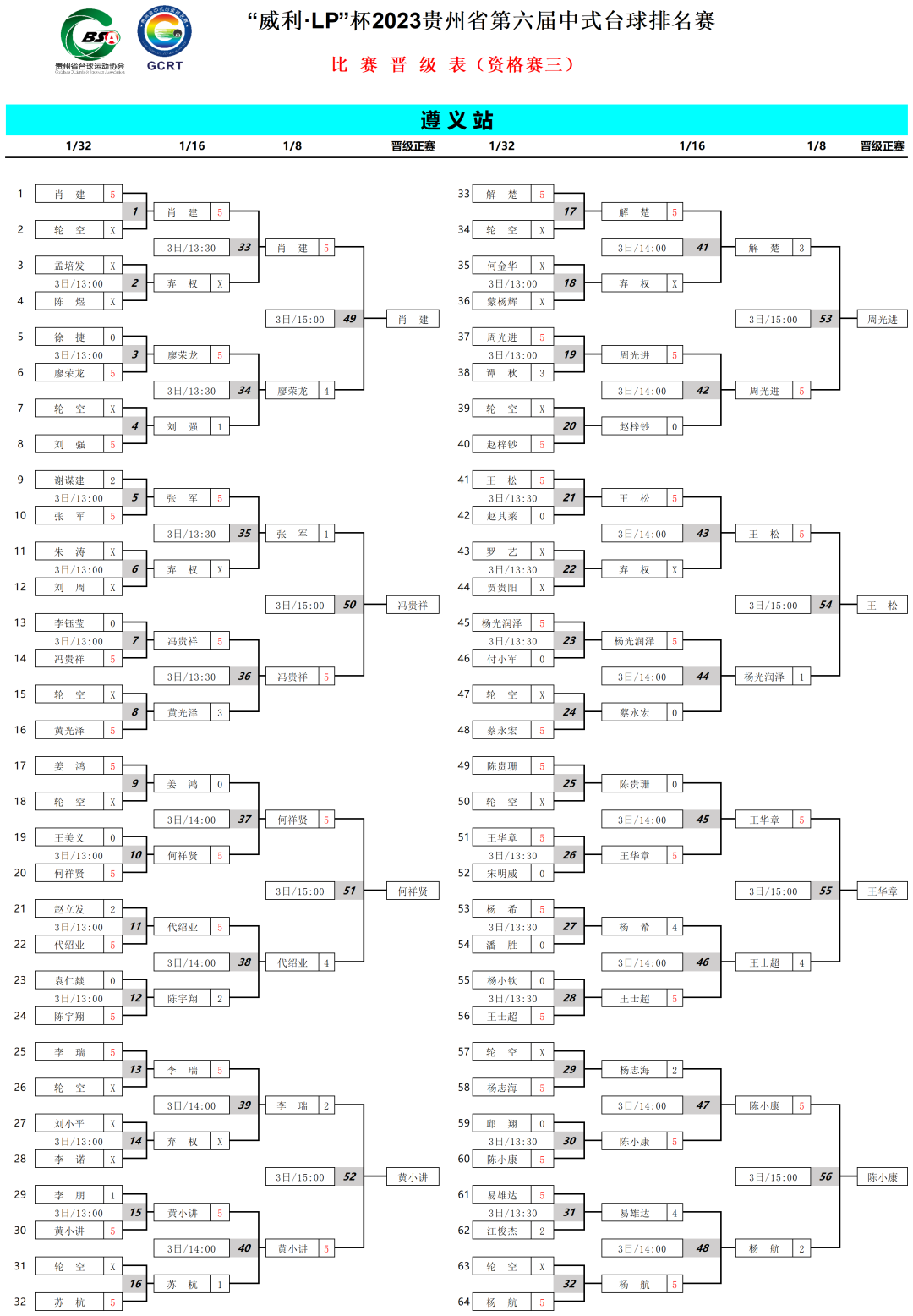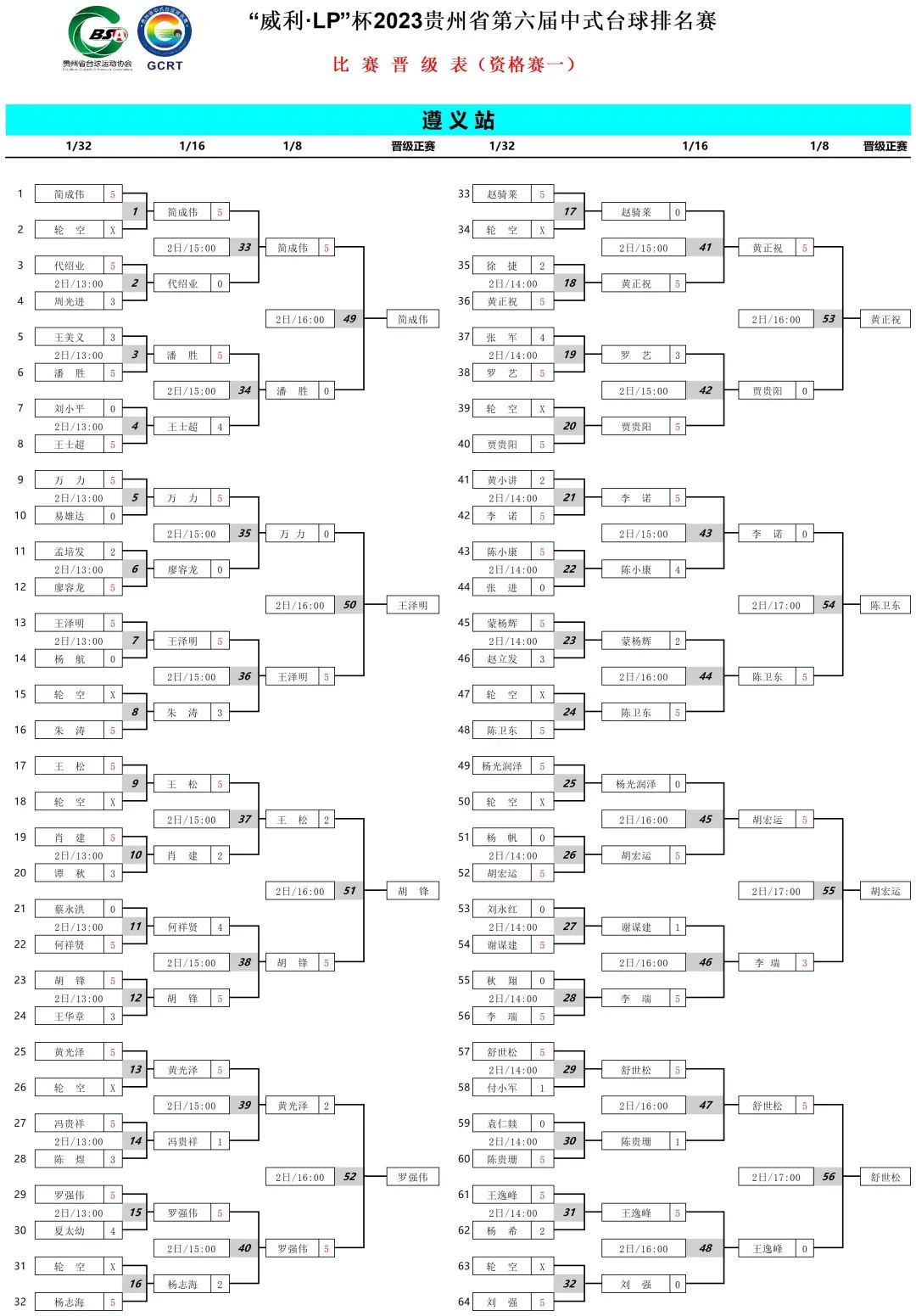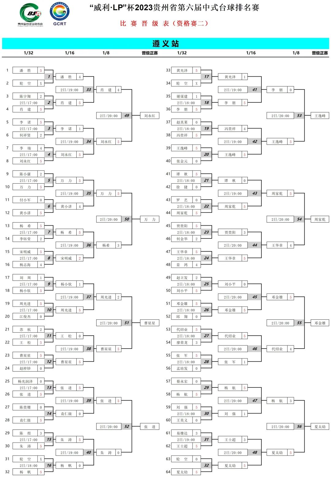 经过两天三场资格赛的比拼,24名选手脱颖而出与上一站积分前八的选手组成正赛32强。在3号的正赛对决中,六盘水站冠军路垚在1/16决赛和胡锋的对决中以2-6的比分出局,遗憾止步32强。