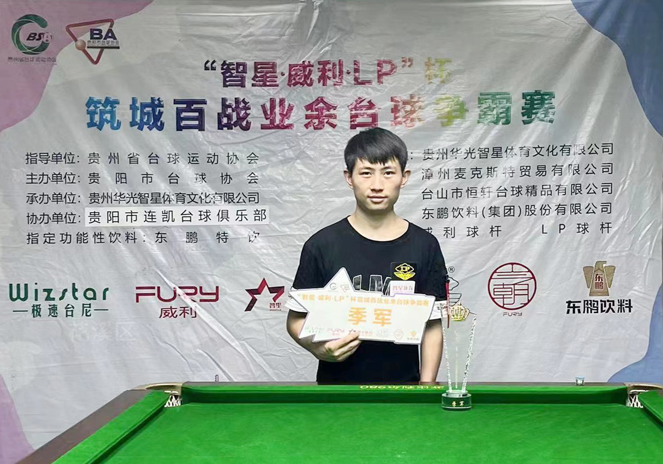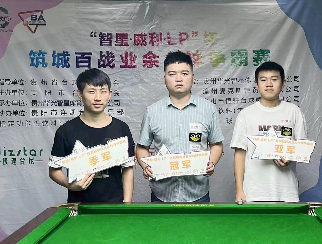 8月20日,“智星·威利·LP”杯筑城百战业余台球争霸赛结束了星耀台球俱乐部站和连凯乔氏台球俱乐部站的比赛。本次赛事由贵州省台球运动协会指导,贵阳市台球协会主办,贵州华光智星体育文化有限公司承办,星耀台球俱乐部和连凯乔氏台球俱乐部协办,贵州华光智星体育文化有限公司、漳州麦克斯特贸易有限公司、台山市恒轩台球精品有限公司、东鹏饮料(集团)股份有限公司赞助。