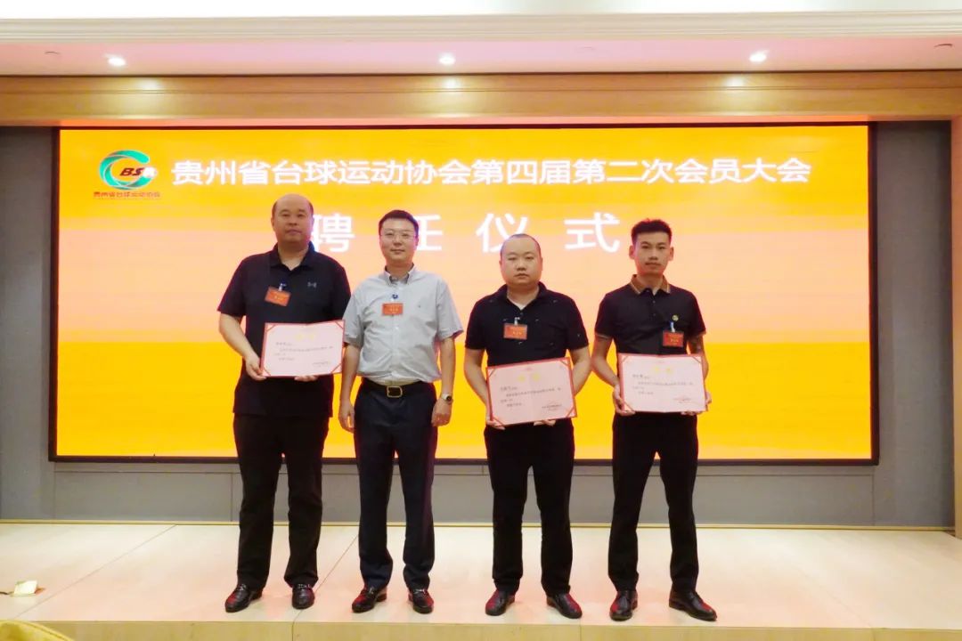 会议的最后,贵州省台球运动协会主席寇思翔为新增的三位理事会成员幸伦雪、王庭飞、张仲禹颁发聘书。贵州省台球运动协会副主席罗茸怀为理事会成员幸伦雪、王庭飞、张仲禹、陈私勇、邢宇、 熊伟、刘永红进行授牌。