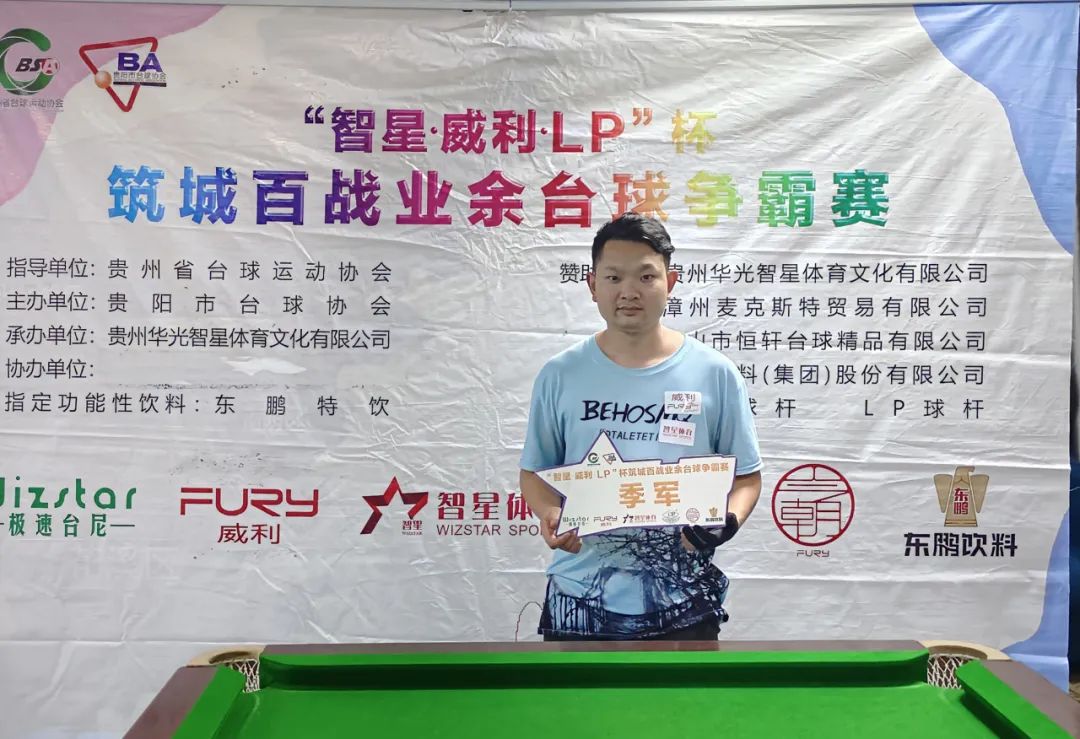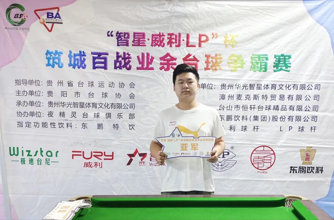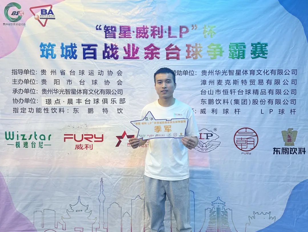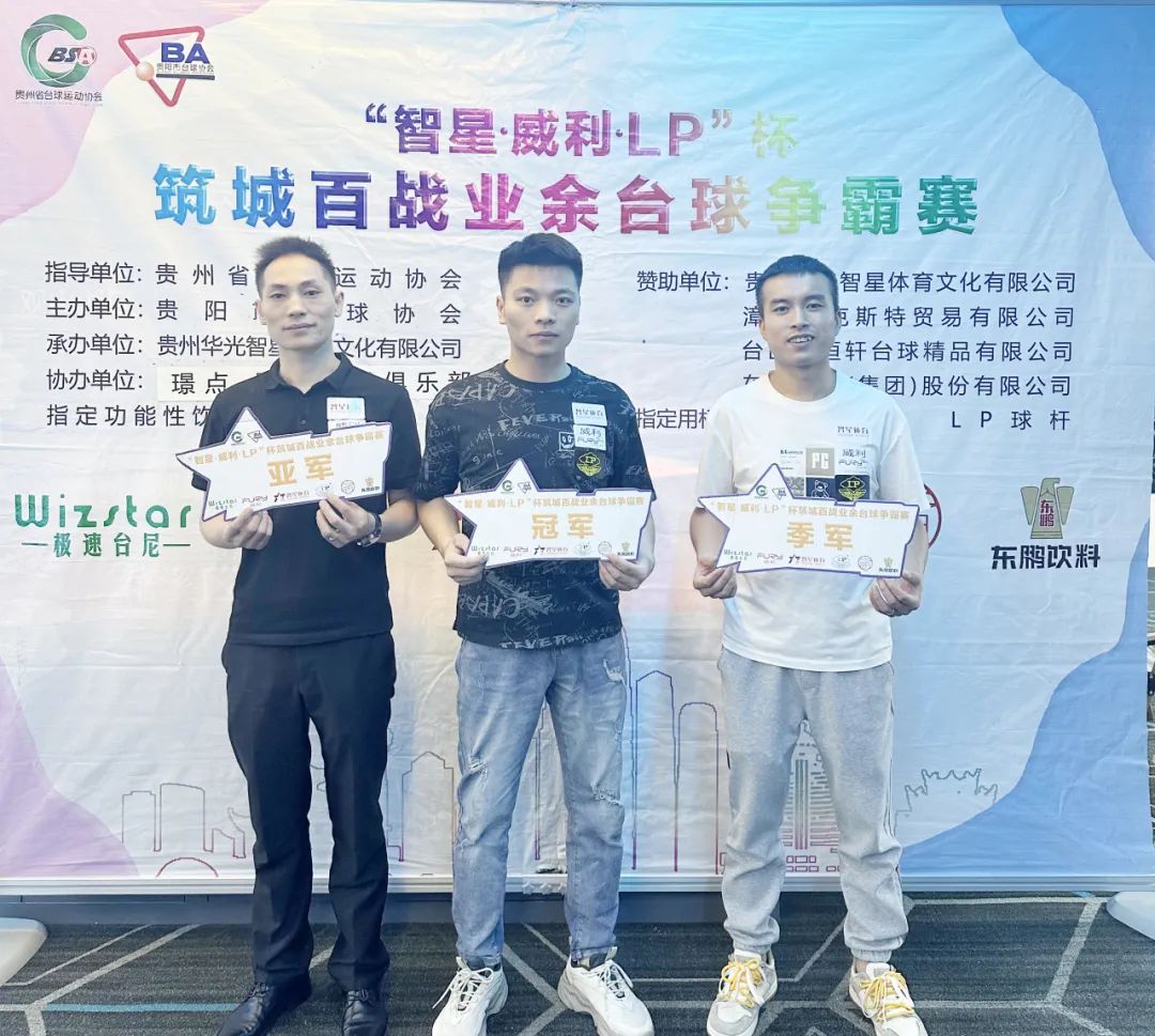 8月27日,“智星·威利·LP”杯筑城百战业余台球争霸赛结束了夜精灵台球俱乐部站和璟点晨丰台球俱乐部站的比赛。本次赛事由贵州省台球运动协会指导,贵阳市台球协会主办,贵州华光智星体育文化有限公司承办,夜精灵台球俱乐部和璟点晨丰台球俱乐部协办,贵州华光智星体育文化有限公司、漳州麦克斯特贸易有限公司、台山市恒轩台球精品有限公司、东鹏饮料(集团)股份有限公司赞助。