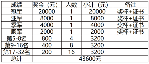 注:前四名奖金扣除10%作为赛事基金。