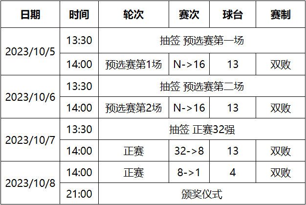 3)正赛:10月7日32进8,10月8日双败至比赛结束。
