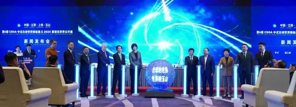 新闻发布会最后,各位领导及嘉宾共同按下启动键,宣布第6届CBSA中式台球世界锦标赛与2024斯诺克世界公开赛正式启航。
